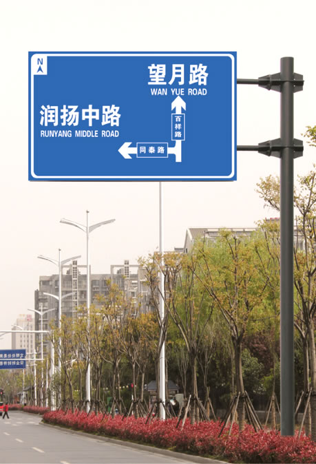 各种标志立杆应浇注混凝土基础,其大小及埋深应按照国家的有关要求确保其安全的情况下施工,通过计算后根据其版面的大小和地基载力决定其尺寸及埋置深度。